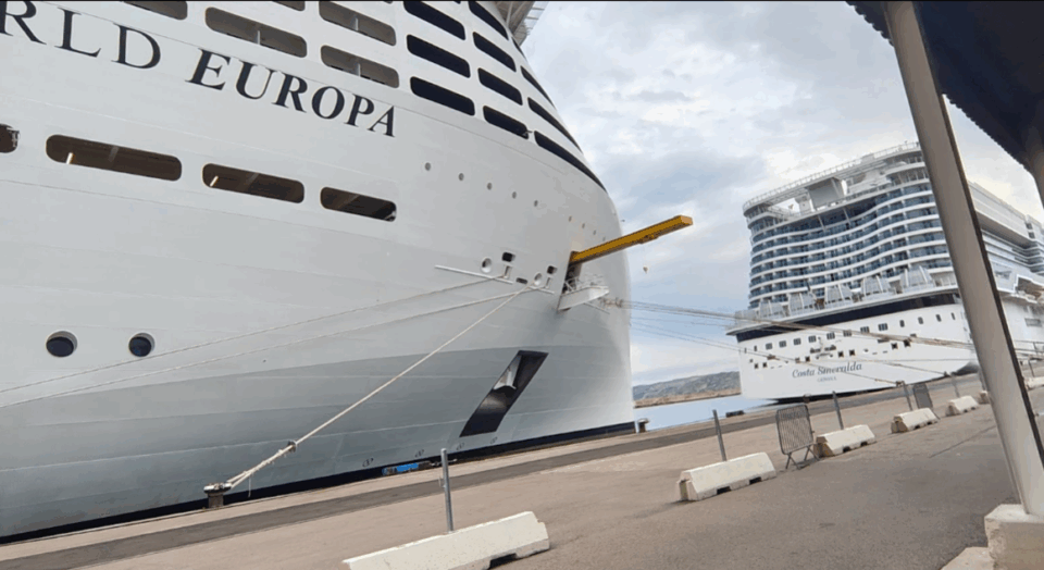 ワールドエウローパの前に停泊しているのはコスタスメラルダ。私たちがドバイで乗ったコスタトスカーナの姉妹船です。