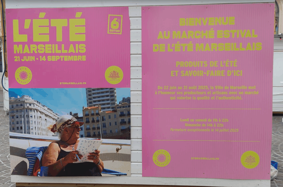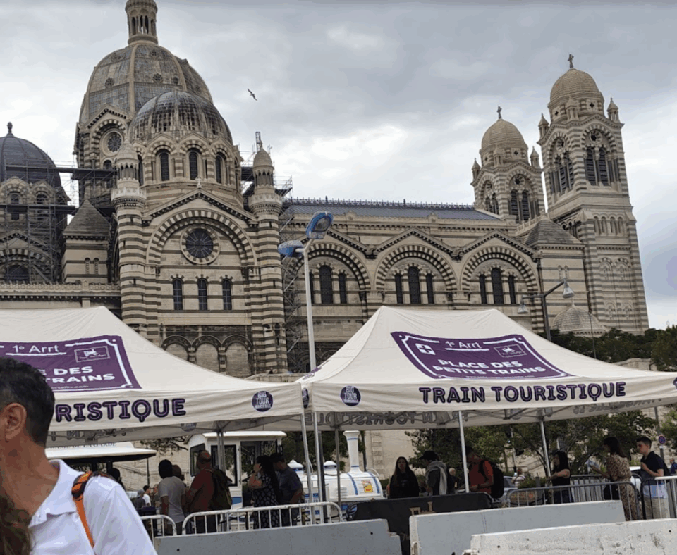 それが分かったのは、本来のプチトラン乗り場ではなく、イベント会場の中心地。この時、私には2つの選択肢がありました。今日だけ移動している坂の上のプチトラン乗り場に戻ってプチトランに乗るか、歩いてノートルダム・ド・ラ・ガルド教会(丘の上)に向かうか…