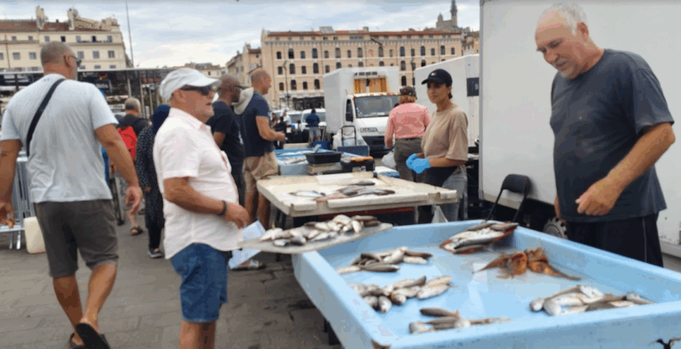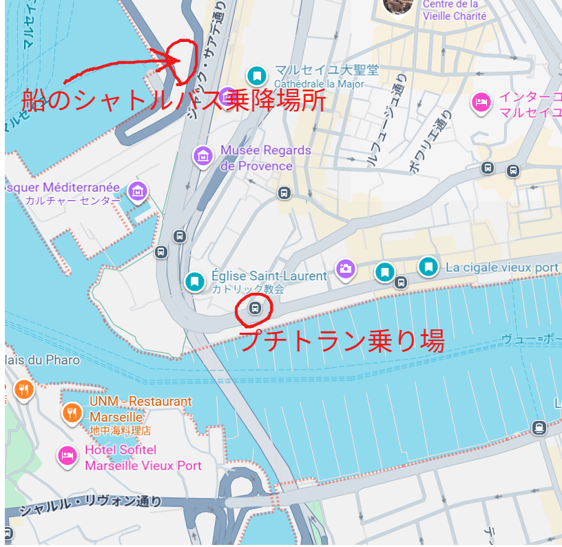 19人のツアー参加者の内ほとんどの人が一緒にシャトルバスに乗ってマルセイユ旧港まで移動しました。