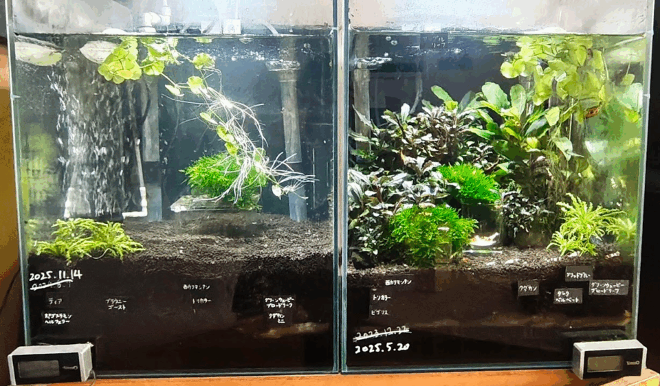 左が今回リセットした無選別水槽。