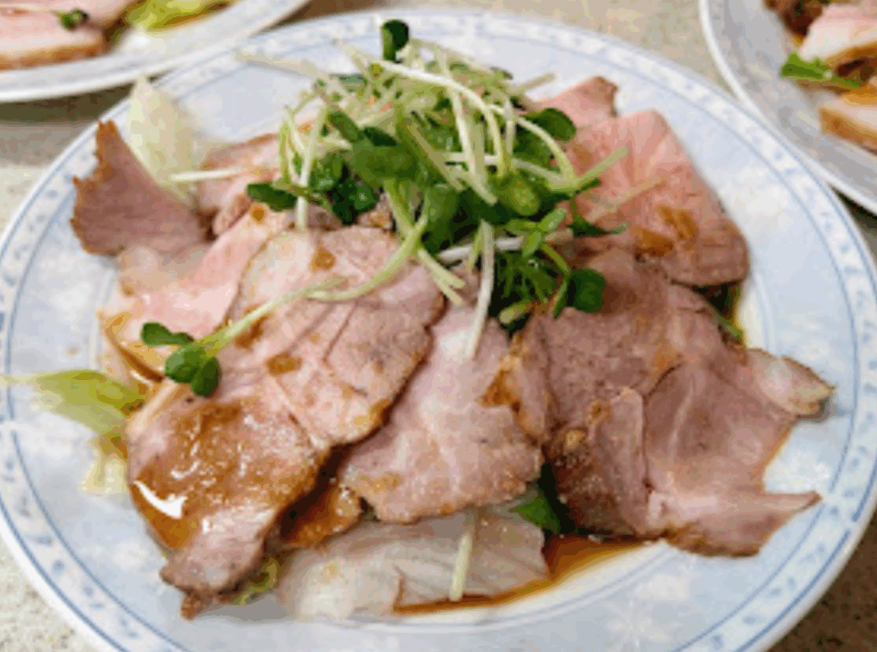 野菜の上に薄くスライスした煮豚を乗せ、たっぷりタレをかけたら美味しいです。