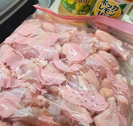 鶏肉2kgでも10人で分けたら一人3~4本です(笑)